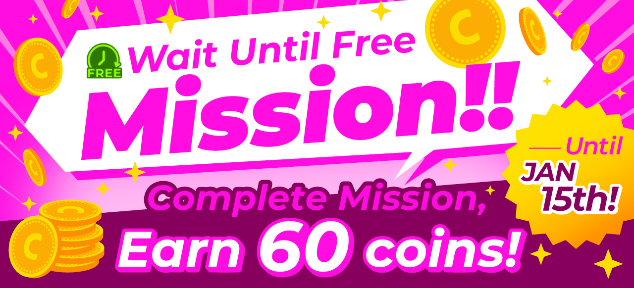 Welcome to the Wait Until Free Mission! Complete 3 exciting missions to earn up to 60 Coins by reading "Wait Until Free" titles.